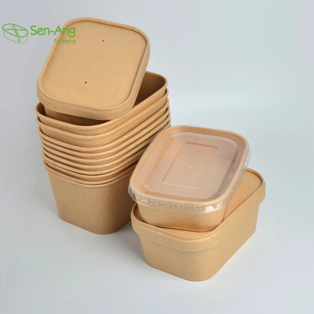 Best Selling Disposable Rectangle Kraft Paper Salad Bowl with PP Lid 750ml for Cookie and Sugar Takeaway ContainersBest Selling Disposable Rectangle Kraft Paper Salad Bowl with PP Lid 750ml for Cookie and Sugar Takeaway Containers
