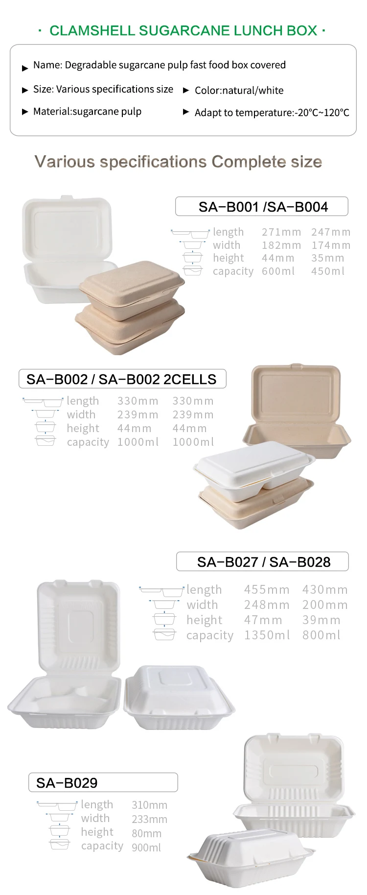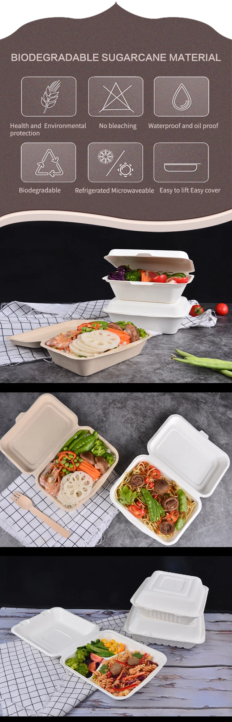 Made from 100% sugarcane . it is biodegradable. healthy. recyclable. saves resources and protects the environment.Caters to the current development trend. is the future of the packaging industry development star.
