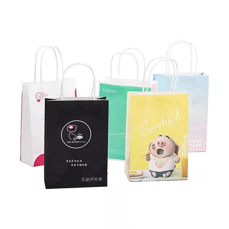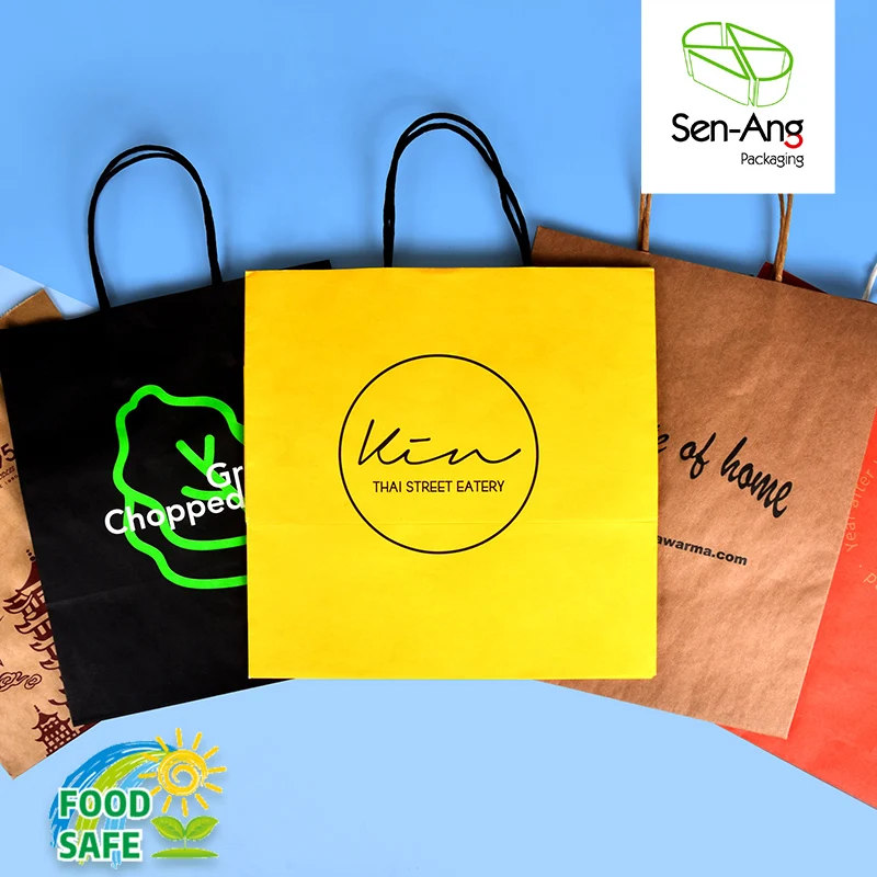 Custom Eco Friendly Kraft Paper Bag Disposable Kraft Paper Takeaway Food Packaging Bag with HandleCustom Eco Friendly Kraft Paper Bag Disposable Kraft Paper Takeaway Food Packaging Bag with Handle