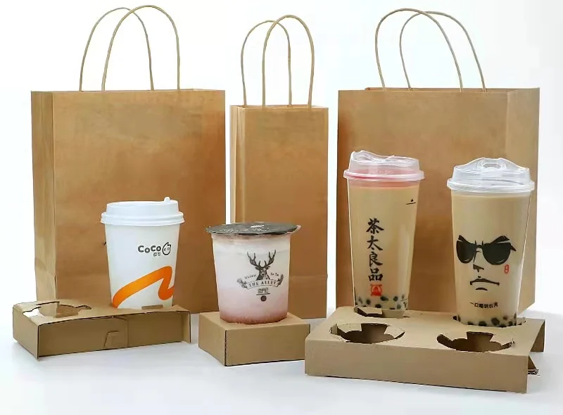 Custom Eco Friendly Kraft Paper Bag Disposable Kraft Paper Takeaway Food Packaging Bag with Handle