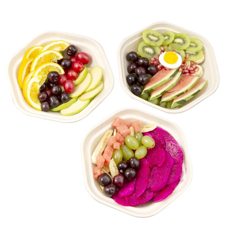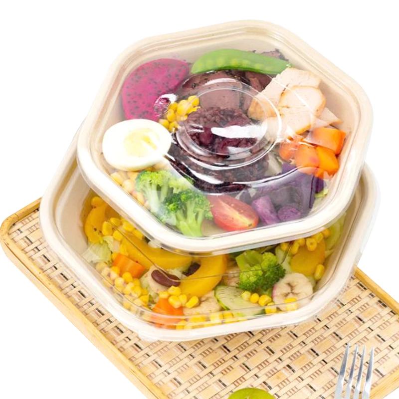 Customizable Biodegradable Hexagonal Sugarcane Bagasse Pulp Salad Bowl with Lid Accessory for Food Packaging and CampingCustomizable Biodegradable Hexagonal Sugarcane Bagasse Pulp Salad Bowl with Lid Accessory for Food Packaging and Camping