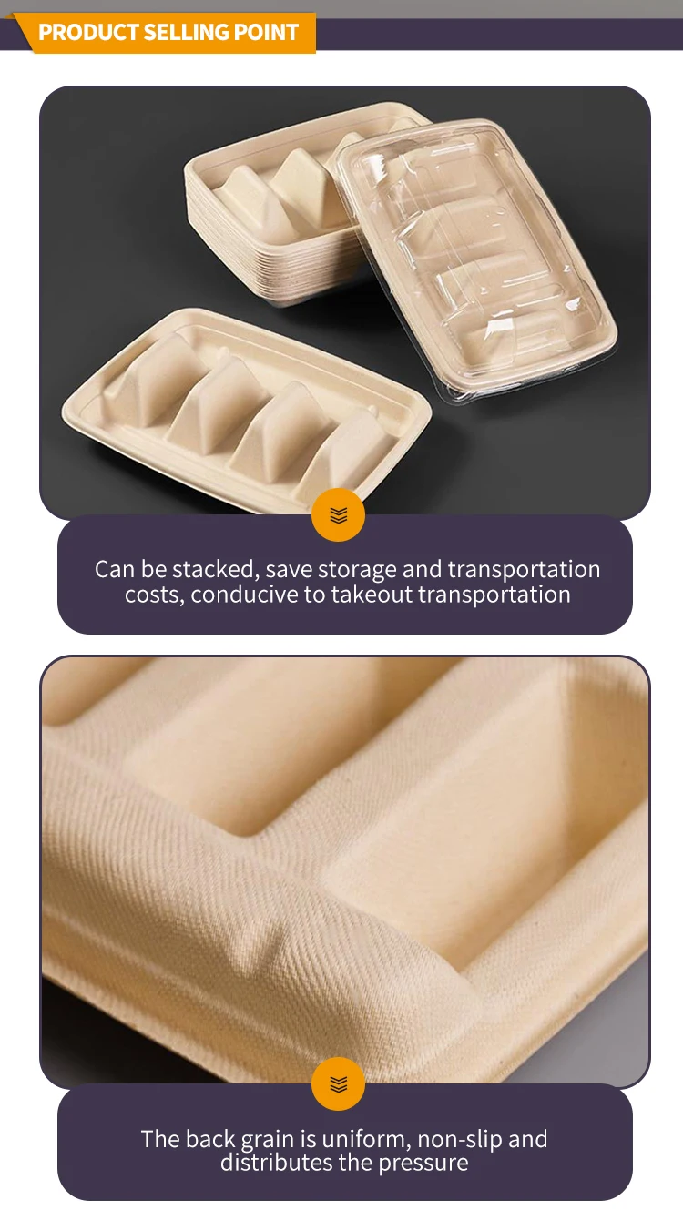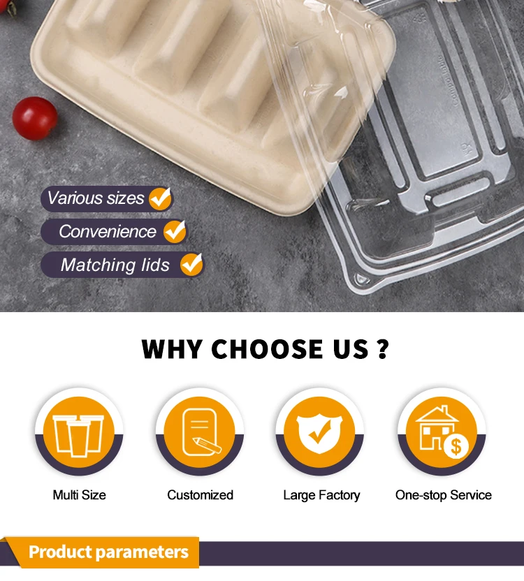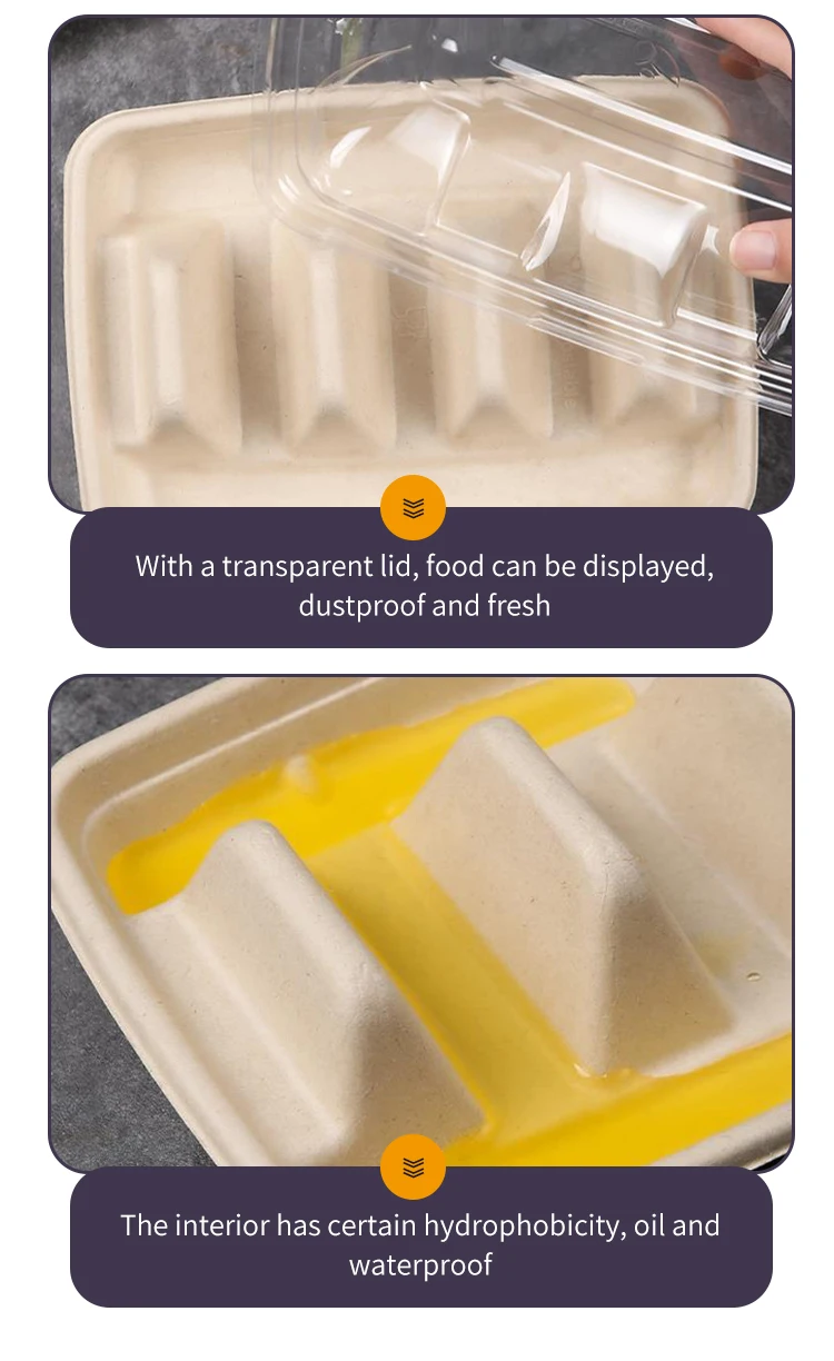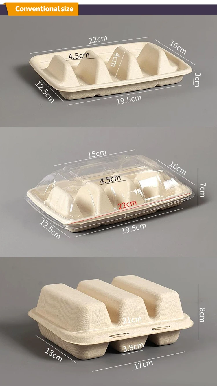 Constructed from an eco-friendly blend of 100% sugarcane and wheat straw. our innovative products are biodegradable. recyclable. and designed to save resources while protecting the environment. Our disposable tableware line. including bowls. plates. trays. bento boxes. and cups. are crafted with advanced technology and cutting-edge materials. Backed by national policies. our products are of superior quality and offer competitive pricing.Our range of eco-friendly tableware boasts numerous advanced features. such as:1. 100% biodegradability. ensuring they are healthy. non-toxic. hygienic. and harmless to both humans and the environment.2. Exceptional resistance to high temperatures. including 120 Celsius oil resistance and 100 Celsius water resistance. preventing any deformation or leakage.3. Compatibility with common kitchen appliances. including microwaves. refrigerators. and ovens.4. Encouraging the recycling of used products to save paper.5. The ability to transform into biodegradable organic fertilizers. returning nutrients to the earth in the form of CO2 and H2O after decomposition.6. Conforming to strict industry standards. as attested to by certifications such as the US FDA. Europe SGS. HACCP. and Japan MHLW.7. Custom designs for buyers are warmly welcomed. allowing for tailored solutions to meet individual needs.