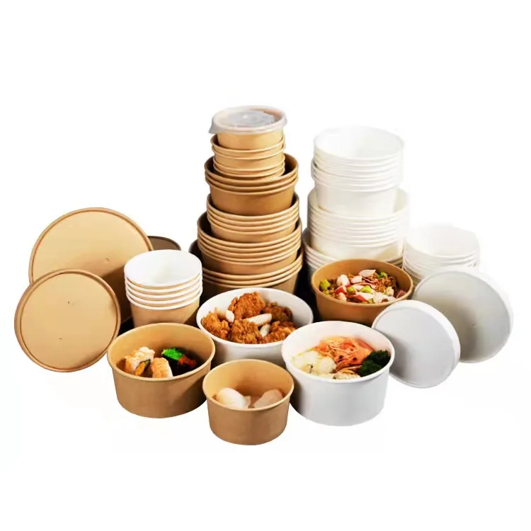 Disposable Eco-Friendly Customizable Kraft Paper Salad Bowls with Lid for CampingDisposable Eco-Friendly Customizable Kraft Paper Salad Bowls with Lid for Camping