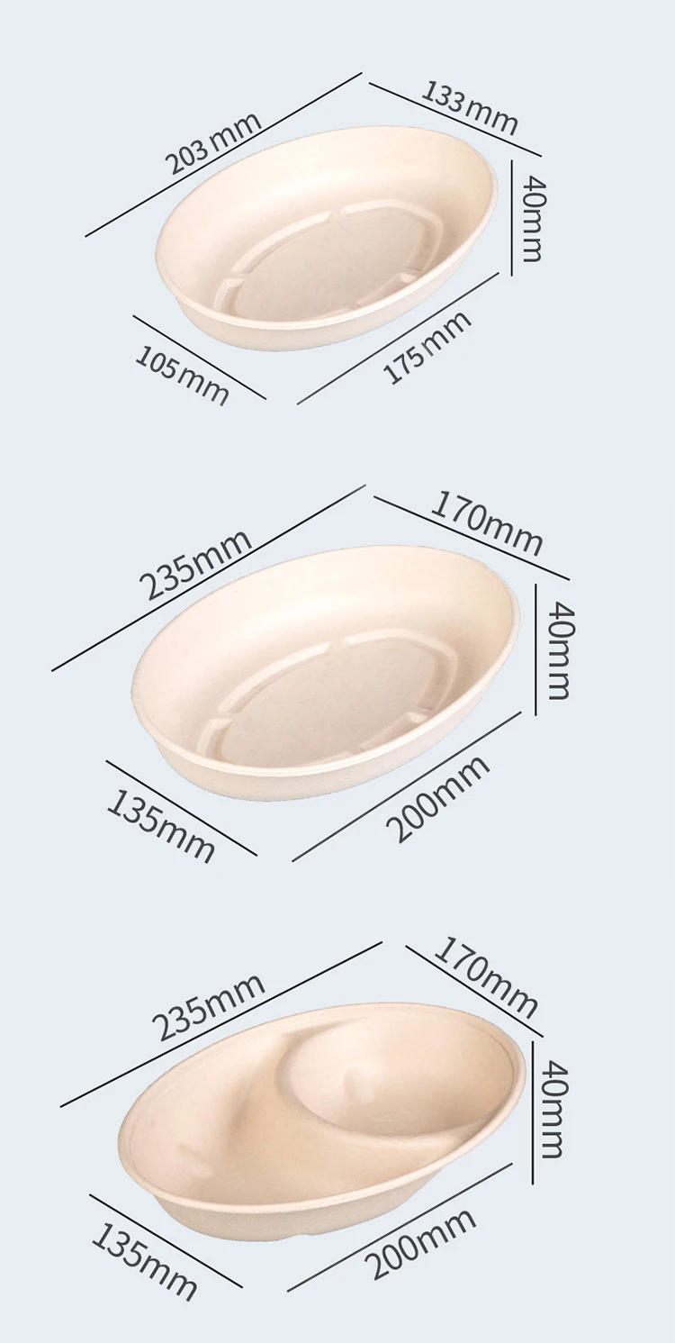 Eco-friendly Food Container Single and Double Division Bagasse Pulp Paper Disposable Biodegradable Oval BowlEco-friendly Food Container Single and Double Division Bagasse Pulp Paper Disposable Biodegradable Oval Bowl