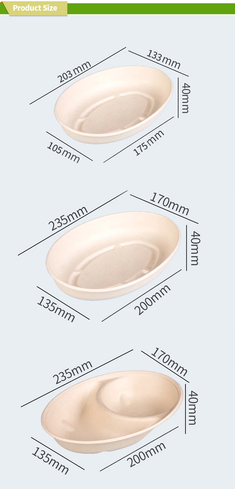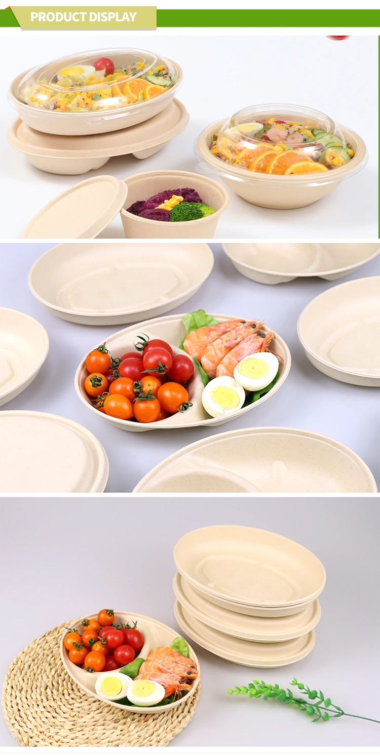 Eco-friendly Food Container Single and Double Division Bagasse Pulp Paper Disposable Biodegradable Oval BowlEco-friendly Food Container Single and Double Division Bagasse Pulp Paper Disposable Biodegradable Oval Bowl