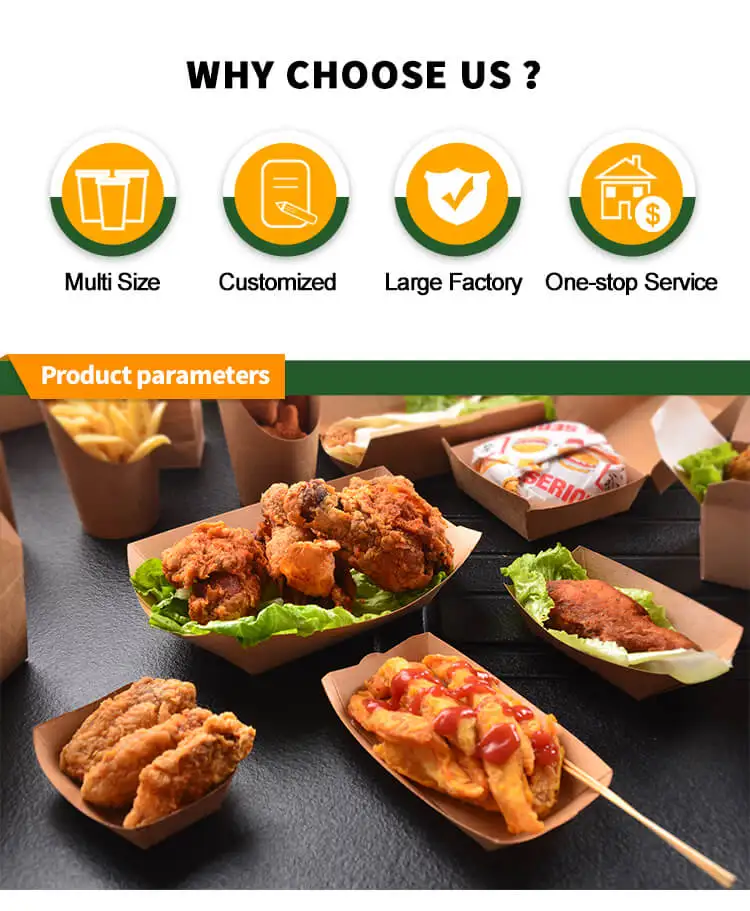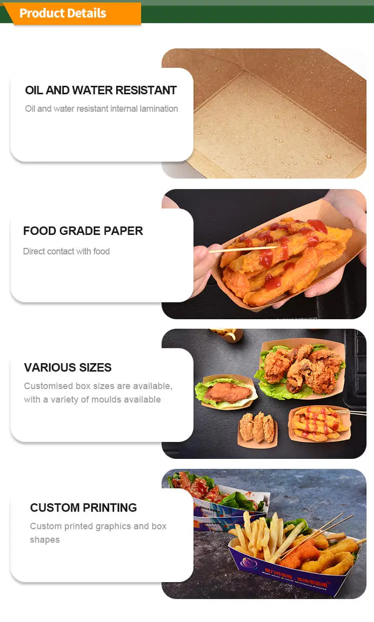 Kraft Paper Tray Take Away Food Fried Chicken Chips Embossing Stamping Varnishing Print Handling Kraft Packaging Boat Tray PaperKraft Paper Tray Take Away Food Fried Chicken Chips Embossing Stamping Varnishing Print Handling Kraft Packaging Boat Tray Paper