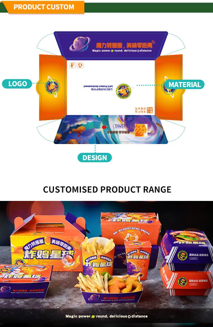 Be the first to review “Kraft Paper Tray Take Away Food Fried Chicken Chips Embossing Stamping Varnishing Print Handling Kraft Packaging Boat Tray Paper”