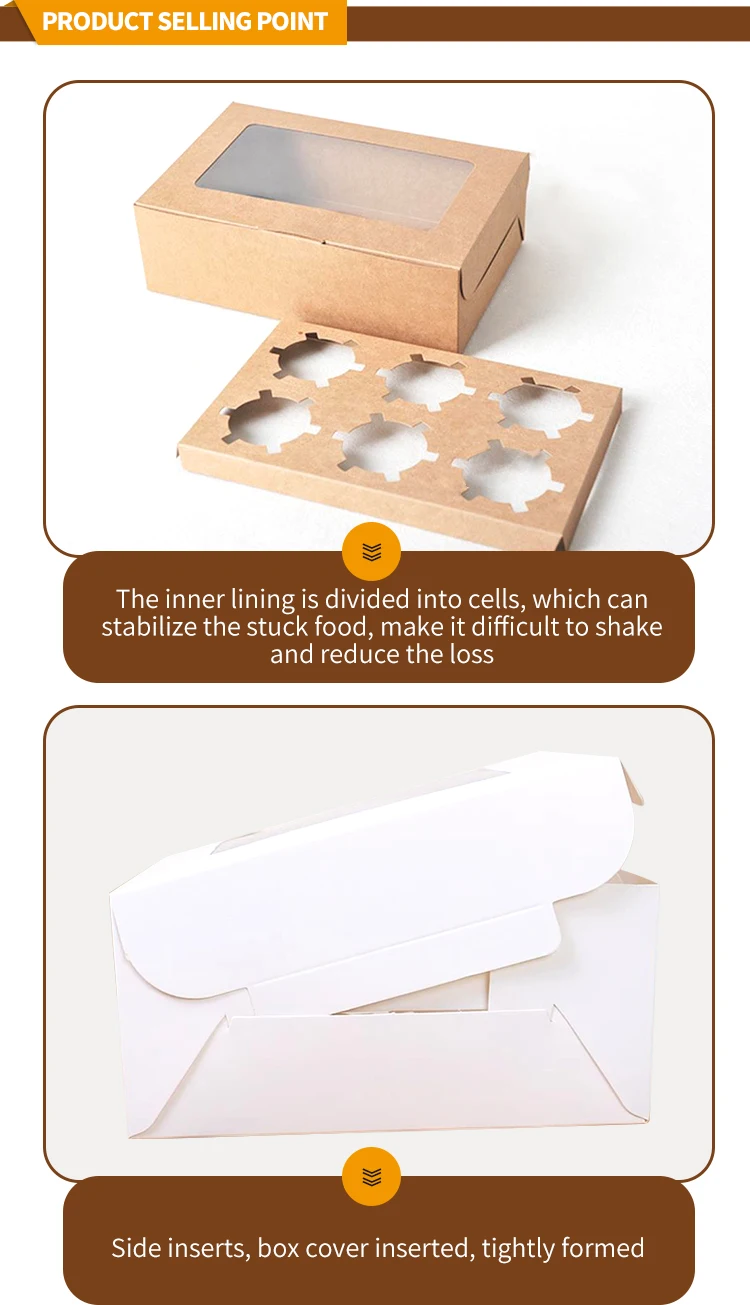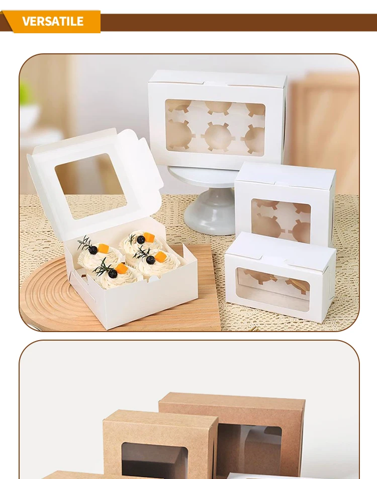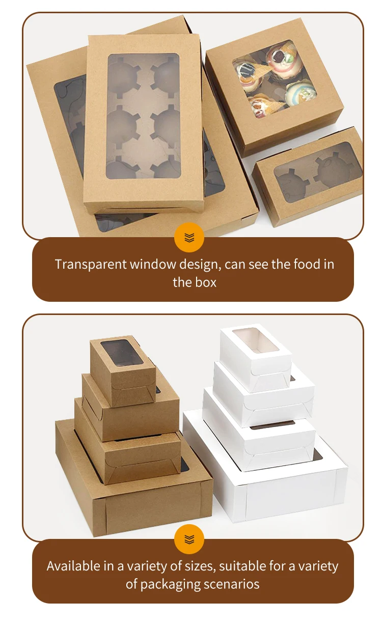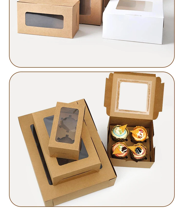 1.High-Quality Material: Crafted from premium kraft white cardboard. these pastry cake packaging boxes are designed to provide a robust and sturdy solution for your gift. macaron. or cake packaging needs. With a personalized touch. add your logo and customize the color to match your brand.2.Attractive Display: The Muffin Box Paper Cake Box features a clear PVC window. allowing potential customers to easily view the product inside. This eye-catching display makes it perfect for showcasing your baked goods and enhancing purchase appeal.3.Durable and Environmentally Friendly: Our cardboard boxes are made from eco-friendly materials. ensuring both the safety of your products and the protection of our planet's resources. The robust construction guarantees that your delicate items arrive in perfect condition.4.Customization Options: YEBEKEA offers a wide range of customization options to suit your specific needs. You can choose from various shapes and sizes. as well as printing techniques such as hot stamping. embossing. and UV coating. We also accept custom orders with a minimum order quantity of 1000 units.5.Competitive Pricing and Fast Shipment: YEBEKEA offers competitive pricing and strives to deliver the best value to our customers. We ship products worldwide via air or sea. ensuring your order reaches its destination efficiently and securely.