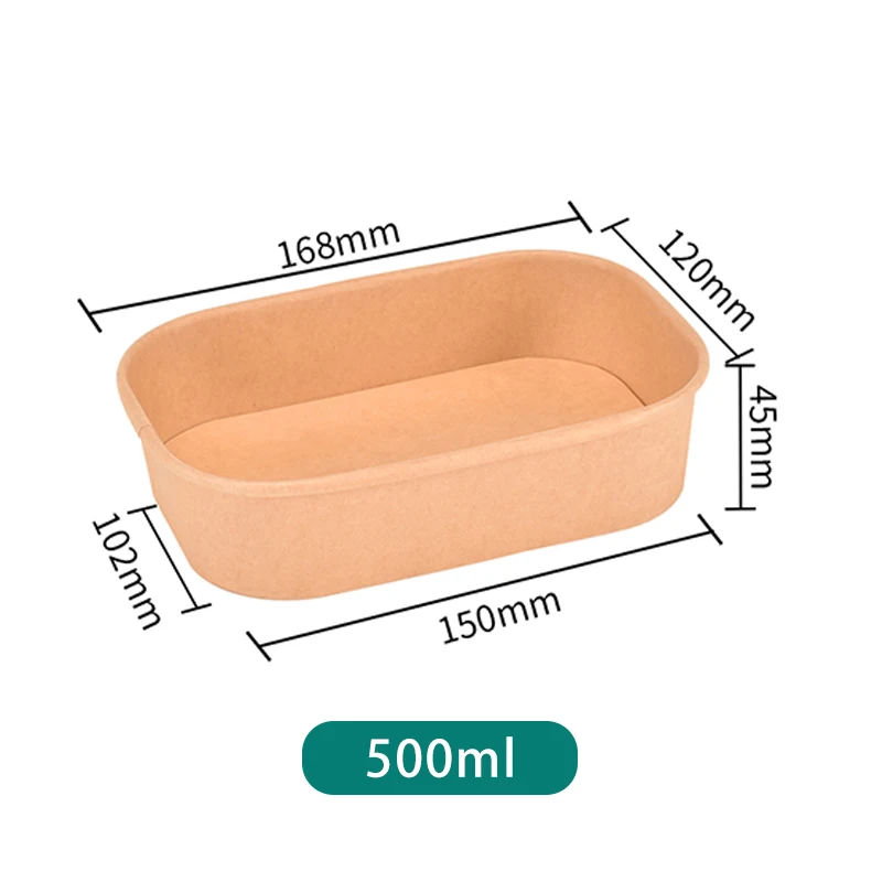 500ml Disposable Eco-Friendly Custom Logo Rectangle Kraft Paper Food Bowl for Hamburger & Bread Takeaway Use500ml Disposable Eco-Friendly Custom Logo Rectangle Kraft Paper Food Bowl for Hamburger & Bread Takeaway Use