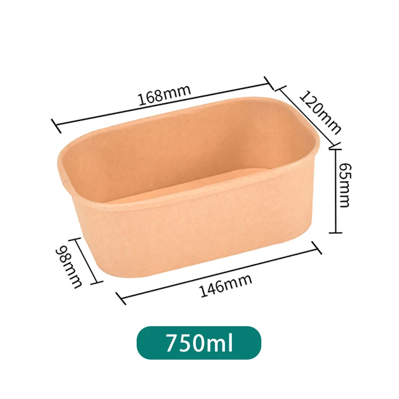750 ml Disposable Takeaway Rectangle Salad Noodle Bowl Kraft Paper Food Packing Bowl for Restaurant750 ml Disposable Takeaway Rectangle Salad Noodle Bowl Kraft Paper Food Packing Bowl for Restaurant