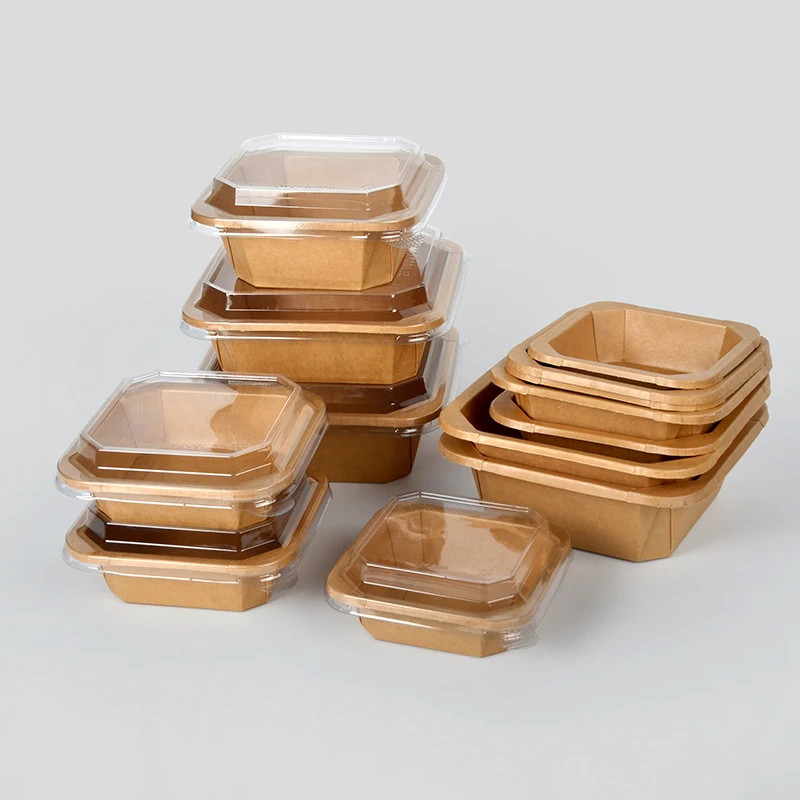 Kraft Rectangle Bowl+PET Lid, Kraft Square Bowl+PET Lid, Kraft Square Bowl+PET Lid+Type-A PP Lining, Kraft Square Bowl+PET Lid+Type-B PP Lining, Kraft Square Bowl+PP Lid+Type-C PP Lining, Kraft Square Bowl+PP Lid+Type-D PP Lining, White Square bowl+PET lid