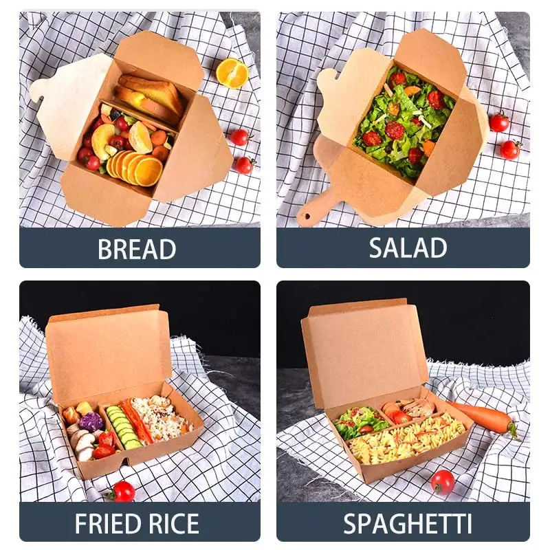 Custom Eco Friendly Biodegradable Kraft Takeaway Food Boxes Food Packaging Multi-compartment Kraft Paper Lunch BoxCustom Eco Friendly Biodegradable Kraft Takeaway Food Boxes Food Packaging Multi-compartment Kraft Paper Lunch Box