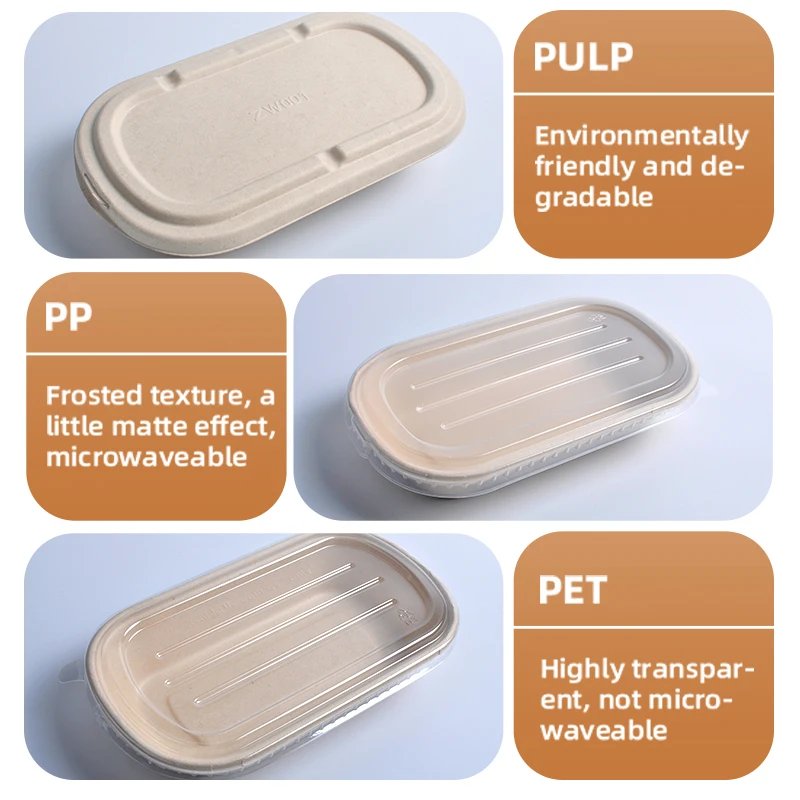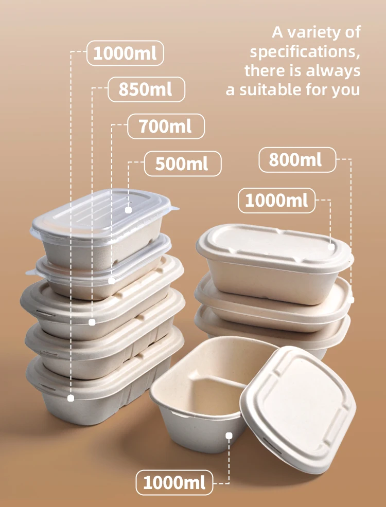 Disposable Biodegradable Sugarcane Bagasse Pulp Food Container Take Away Lunch Box with LidDisposable Biodegradable Sugarcane Bagasse Pulp Food Container Take Away Lunch Box with Lid