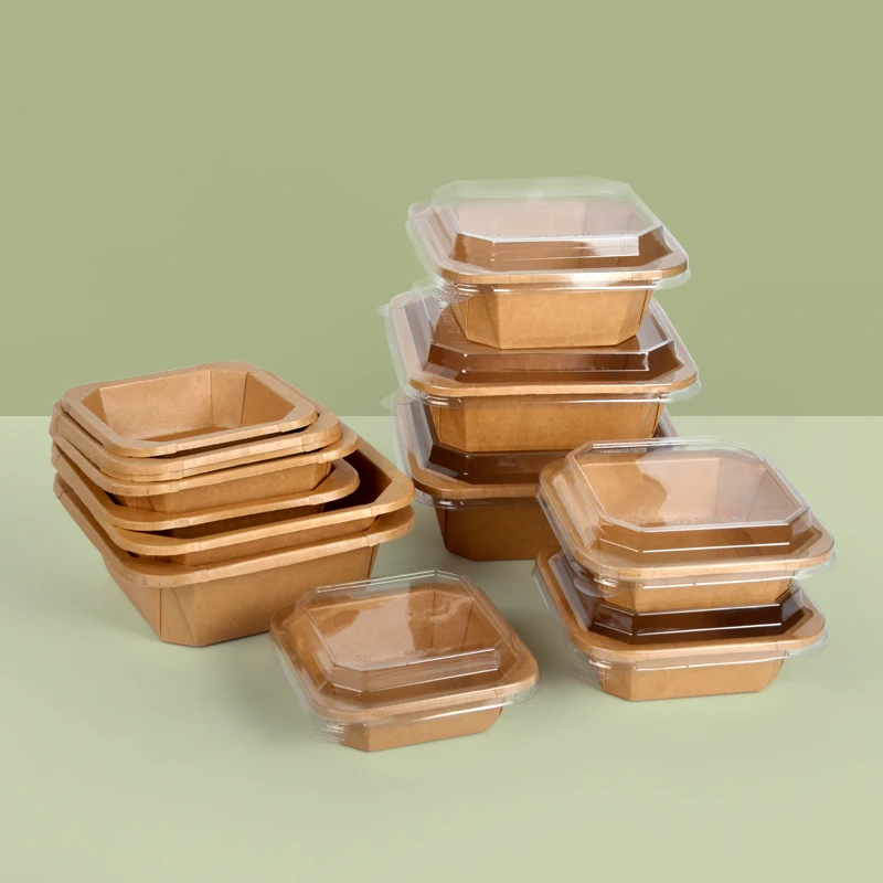 Kraft Rectangle Bowl+PET Lid, Kraft Square Bowl+PET Lid, Kraft Square Bowl+PET Lid+Type-A PP Lining, Kraft Square Bowl+PET Lid+Type-B PP Lining, Kraft Square Bowl+PP Lid+Type-C PP Lining, Kraft Square Bowl+PP Lid+Type-D PP Lining, White Square bowl+PET lid