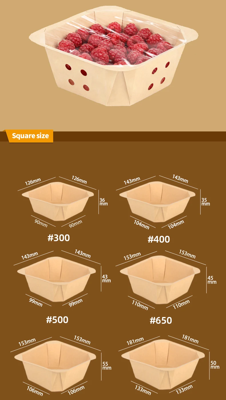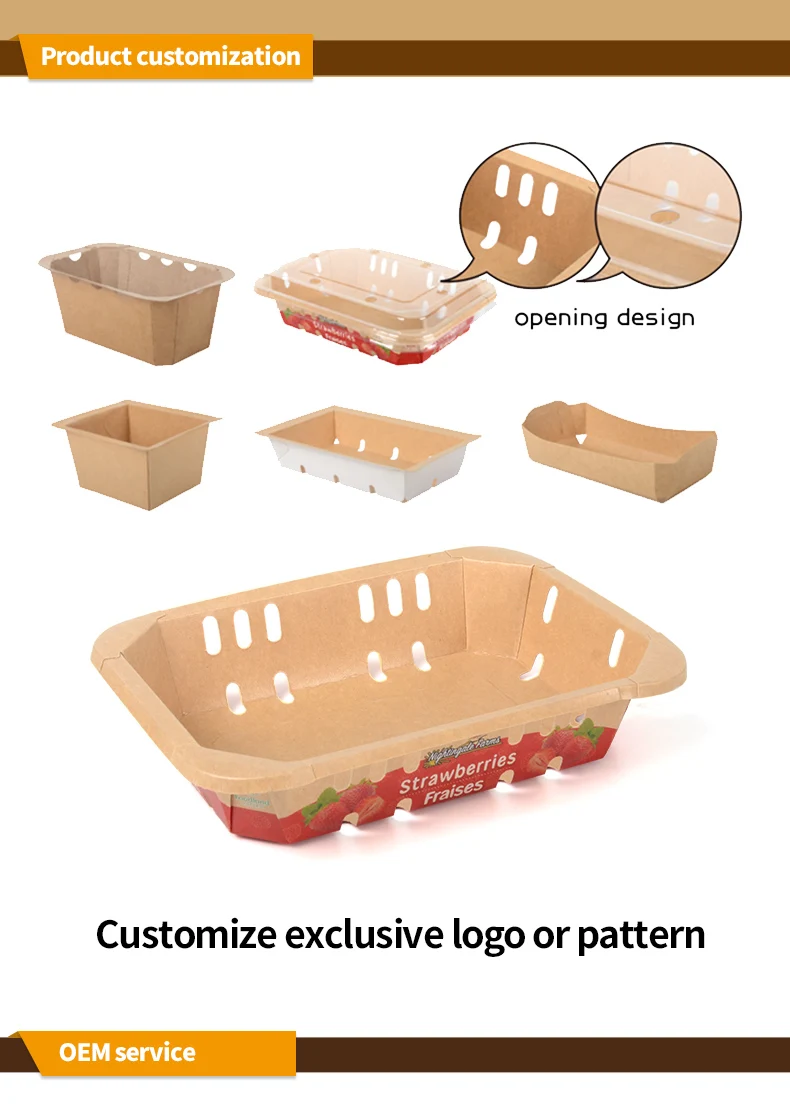 Be the first to review “Wholesale Recyclable Material for Farms Fruit Shops Retail Fruit Vent Holes Paper Produce Trays with Plastic Wrap Seal”