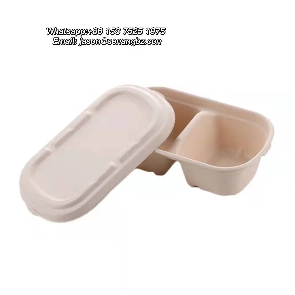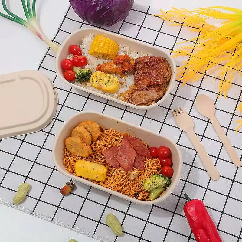 / Eco Friendly Compostable Take Away Food Container Disposable Bagasse Pulp Lunch Box with Lid