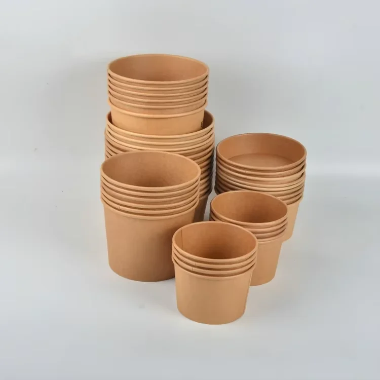 Disposable Eco-Friendly Customizable Kraft Paper Salad Bowls with Lid for Camping