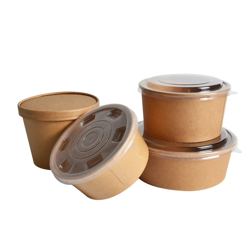 Disposable Paper Food Container Bucket Take Away Soup Bowl With Lid Round Kraft Salad Paper BowlDisposable Paper Food Container Bucket Take Away Soup Bowl With Lid Round Kraft Salad Paper Bowl