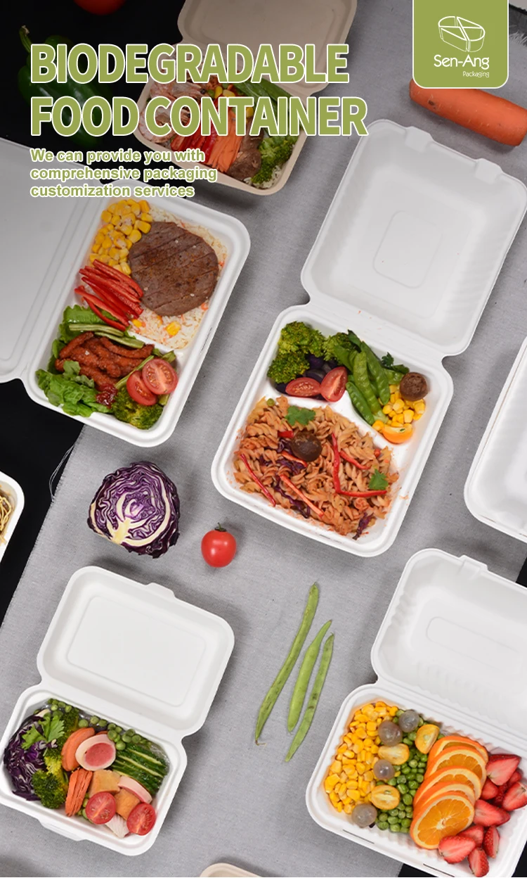 8'' Disposable Takeaway Bagasse Compostable Tableware Food Packaging Sugarcane Biodegradable Box Clamshell Container8” Disposable Takeaway Bagasse Compostable Tableware Food Packaging Sugarcane Biodegradable Box Clamshell Container
