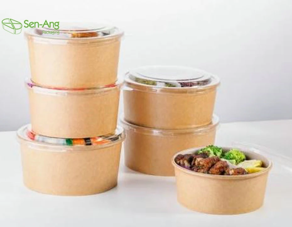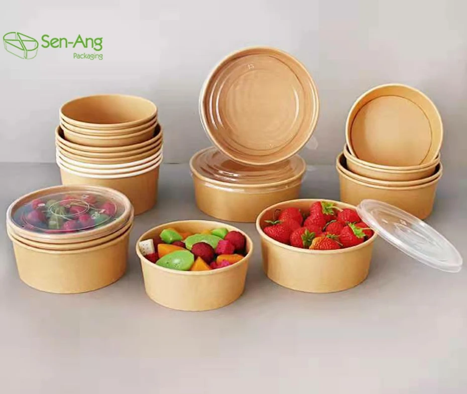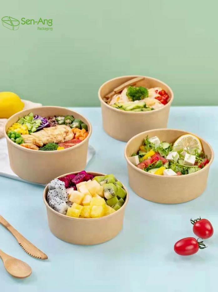 Eco Friendly Disposable Customizable Kraft Paper Salad Bowl PP Paper Lid Custom Sizes (6/8/12Oz)Eco Friendly Disposable Customizable Kraft Paper Salad Bowl PP Paper Lid Custom Sizes (6/8/12Oz)