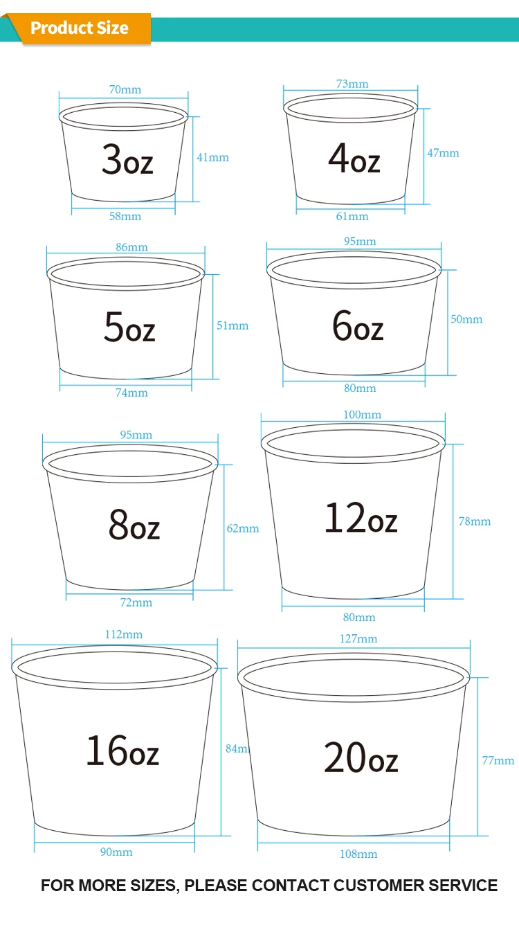 SIZE: 3oz 4oz 5oz 6oz 8oz 12oz 16oz 20oz