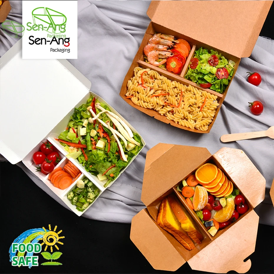 / New Product Container Leak Proof Lunch With Compartment Microwaveable Safe Kraft Paper Box