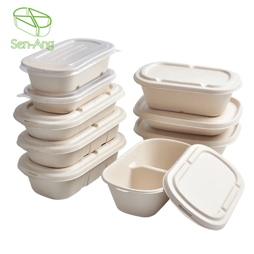 The New Listing Take Away Pulp Plate Multi Lunch With Lid Takeout Bagasse Sugarcane Food Rectangle Compartment Biodegradable Box
