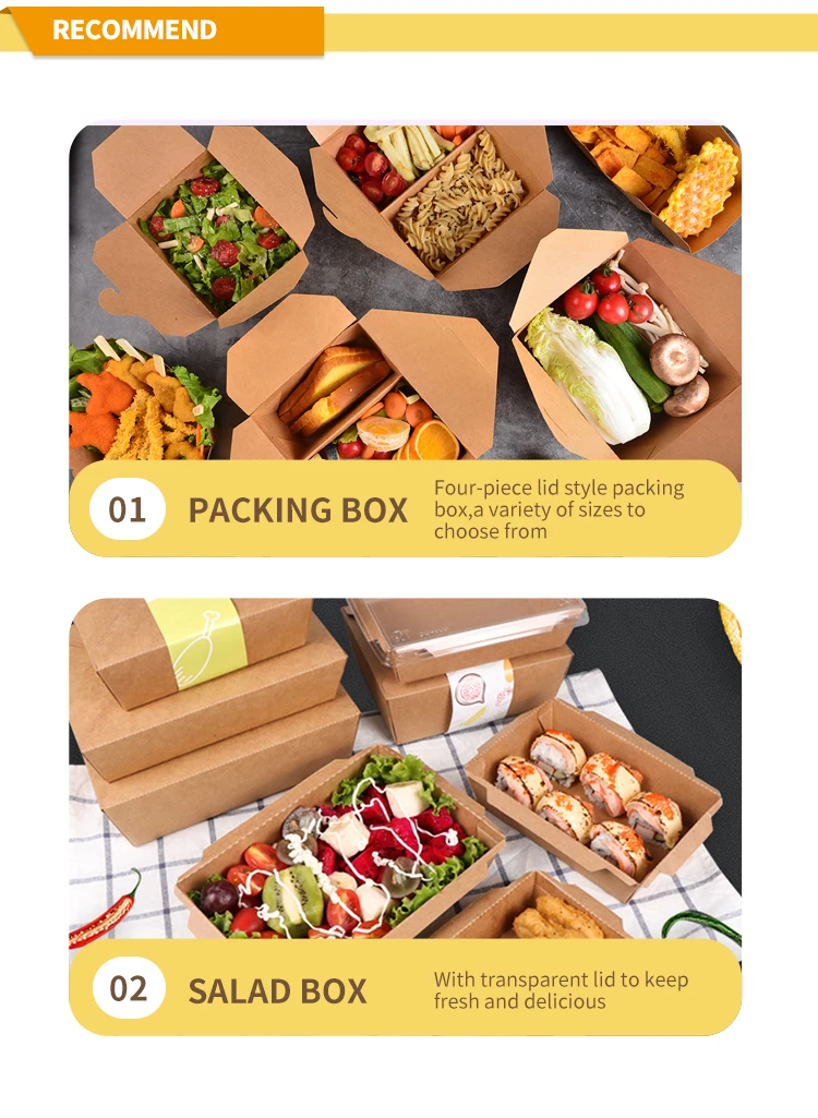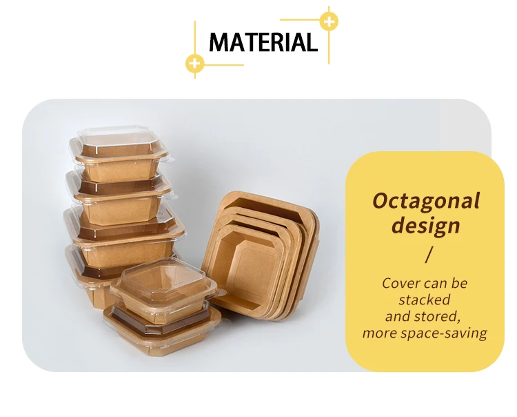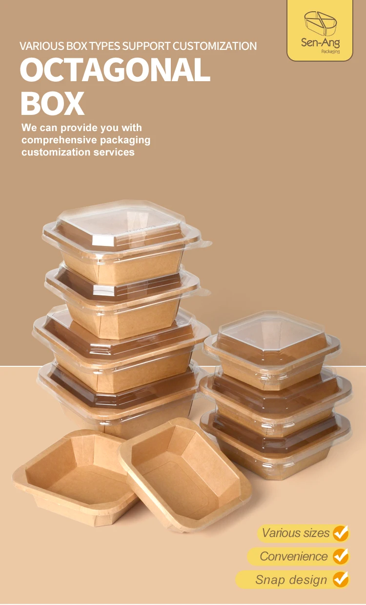 Salad Rectangle Takeaway Kraft Paper Octagonal Bowl with LidSalad Rectangle Takeaway Kraft Paper Octagonal Bowl with Lid
