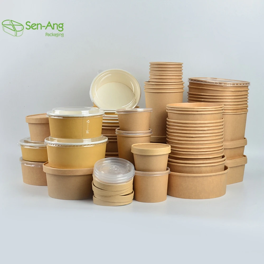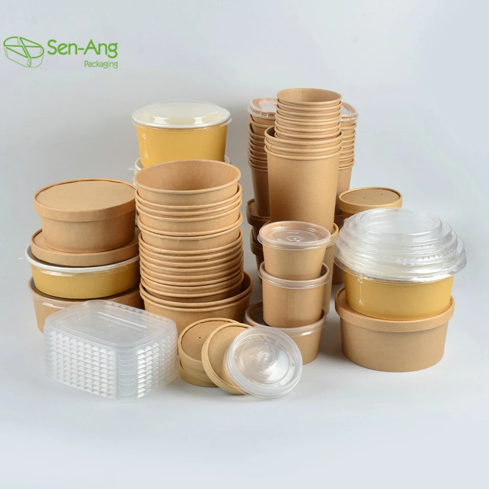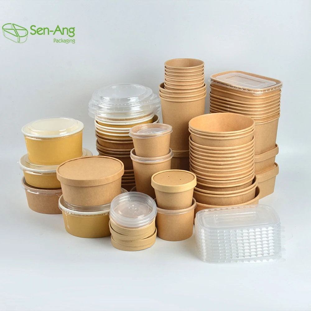 Best Selling Brown Meal Box 580Ml White Paper With Lid Disposable Salad BowlBest Selling Brown Meal Box 580Ml White Paper With Lid Disposable Salad Bowl