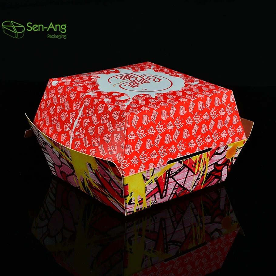 Best Selling Triangle Takeaway Square Yellow Wrap Sandwich Hamburger Shape for Restaurant Box Boat Tray