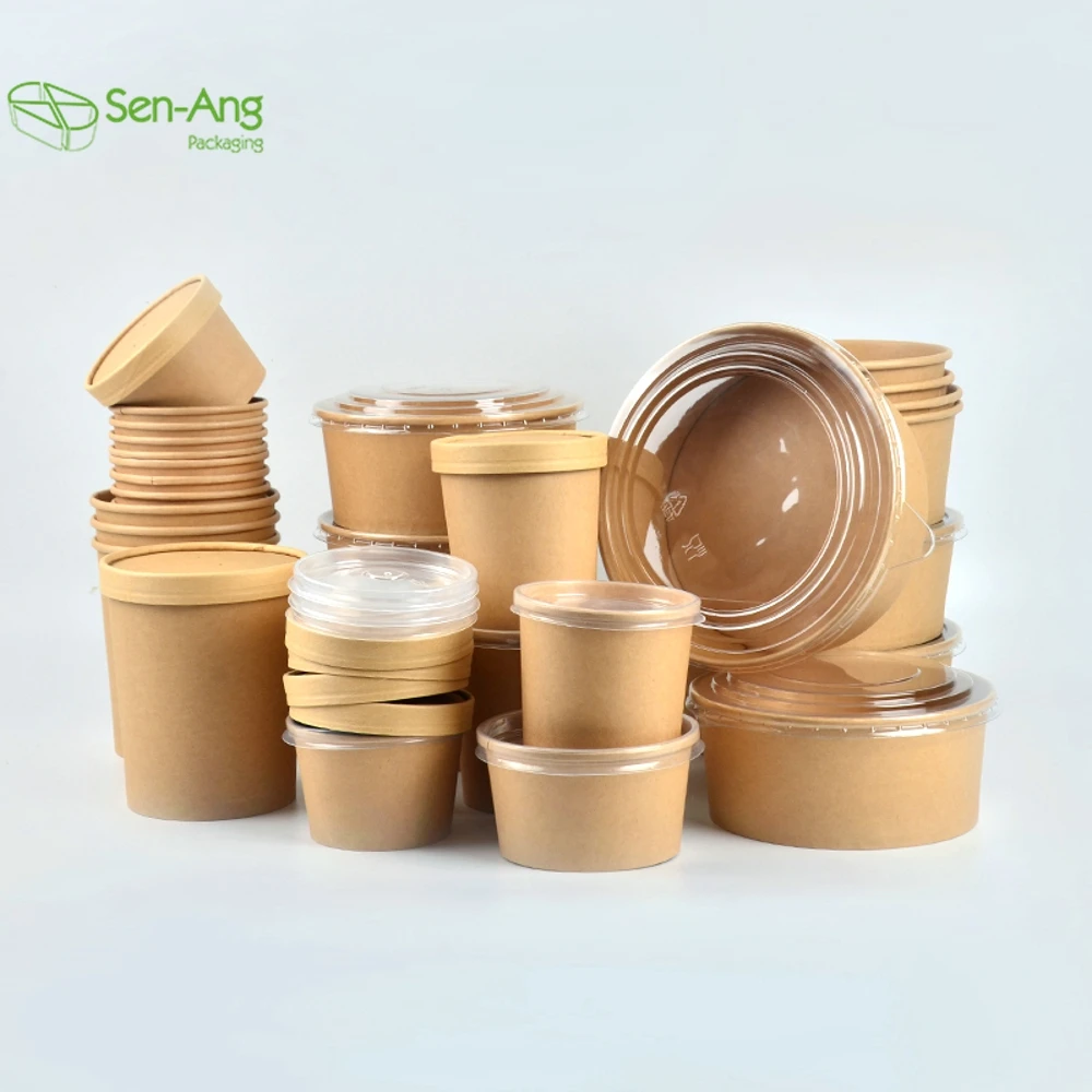 Eco-Friendly Disposable Double Wall Kraft Paper Pe Coating Custom Logo Party 780Ml Soup Hot Carton Bucket Paper Bowl