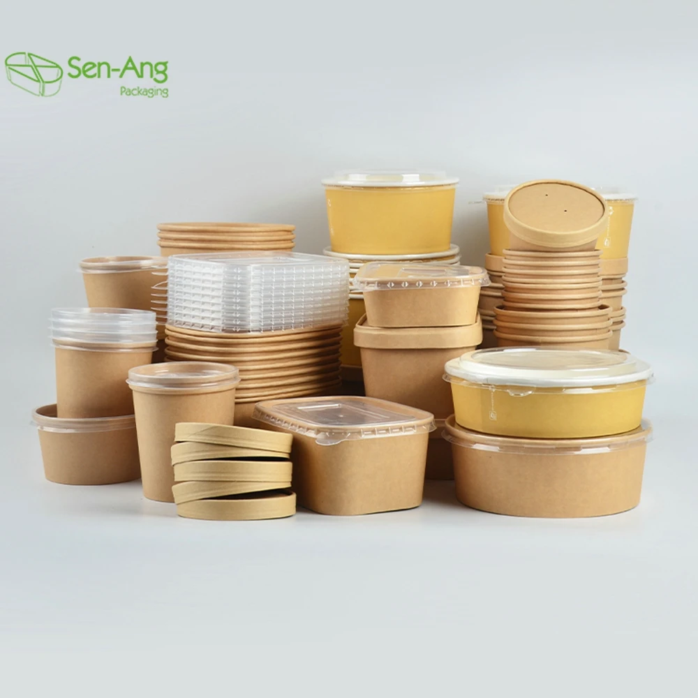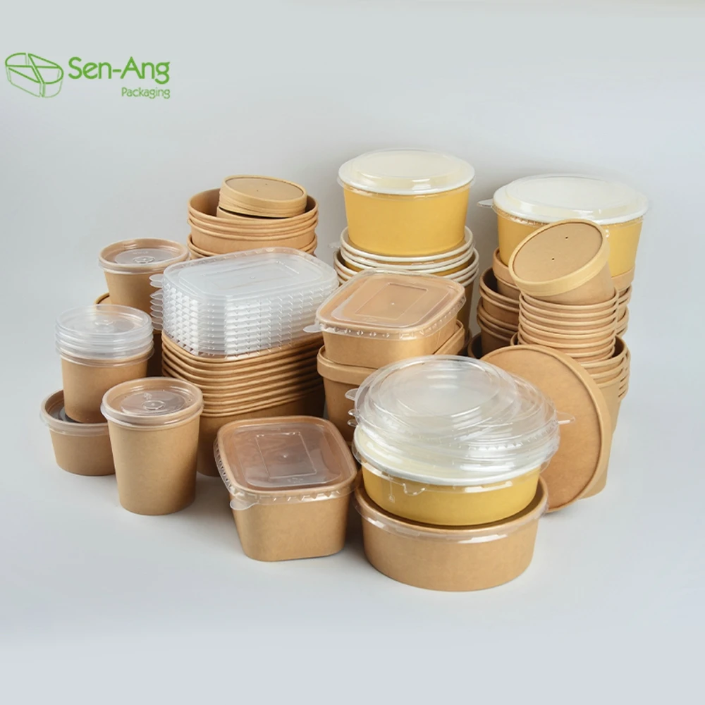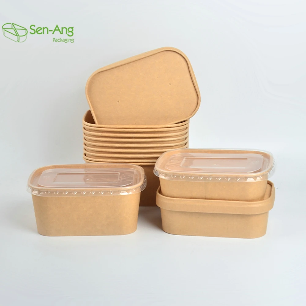 Factory Direct Sale Takeaway Container Take Away Box Lid Salad Rectangle Way Out 750Ml Kraft Paper Bowl