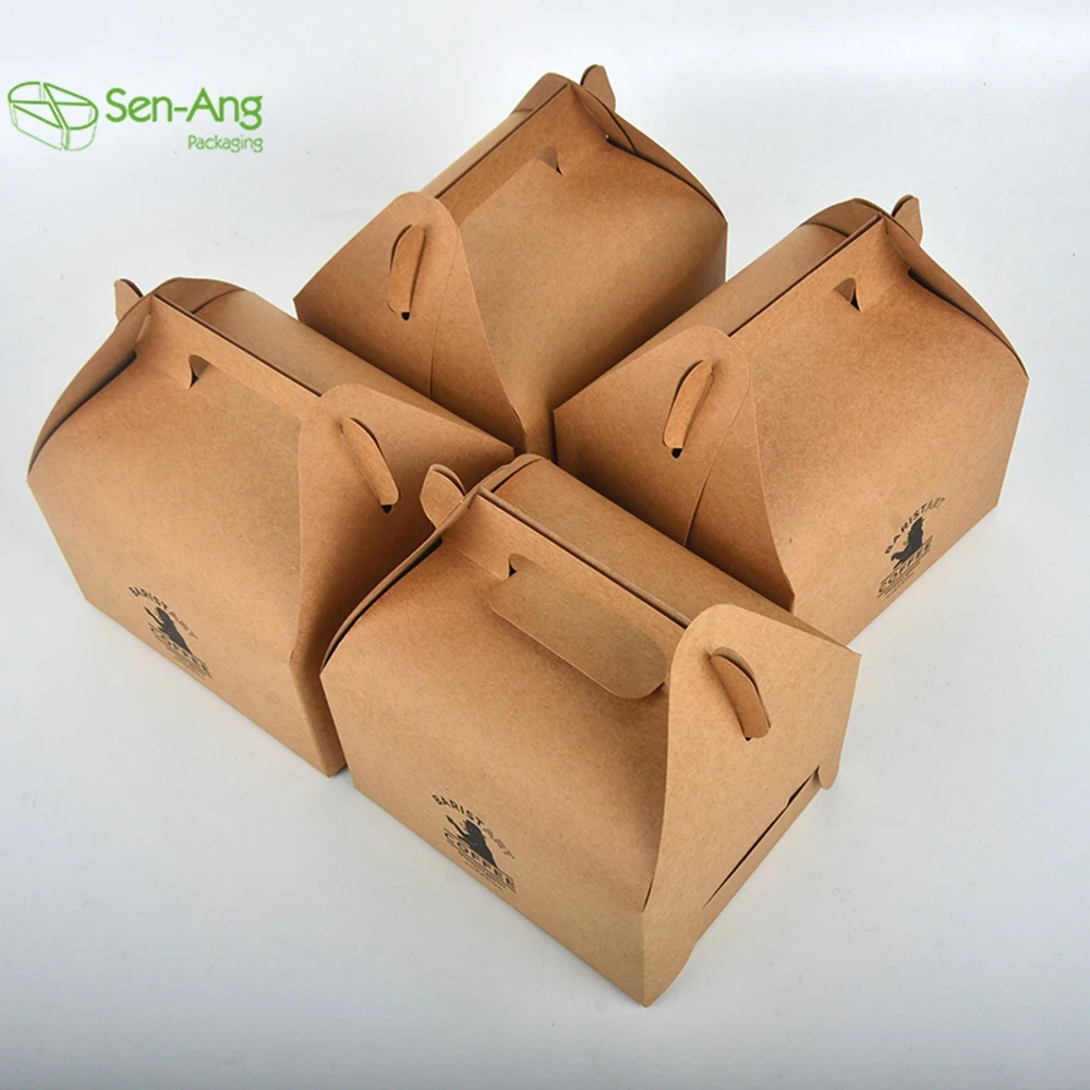 High Quality Round Kraft Paper Bread Bag White Handle Custom Size Square Cake Box With Window