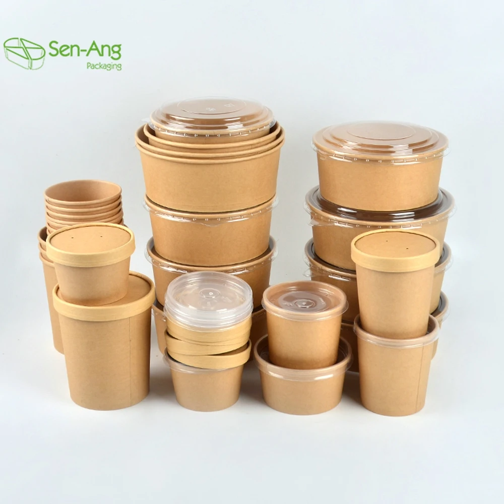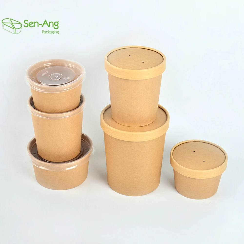 High Quality Soup Noodle Cup Packaging Mushroom 8Oz Double Wall Kraft Paper Take Away Bucket