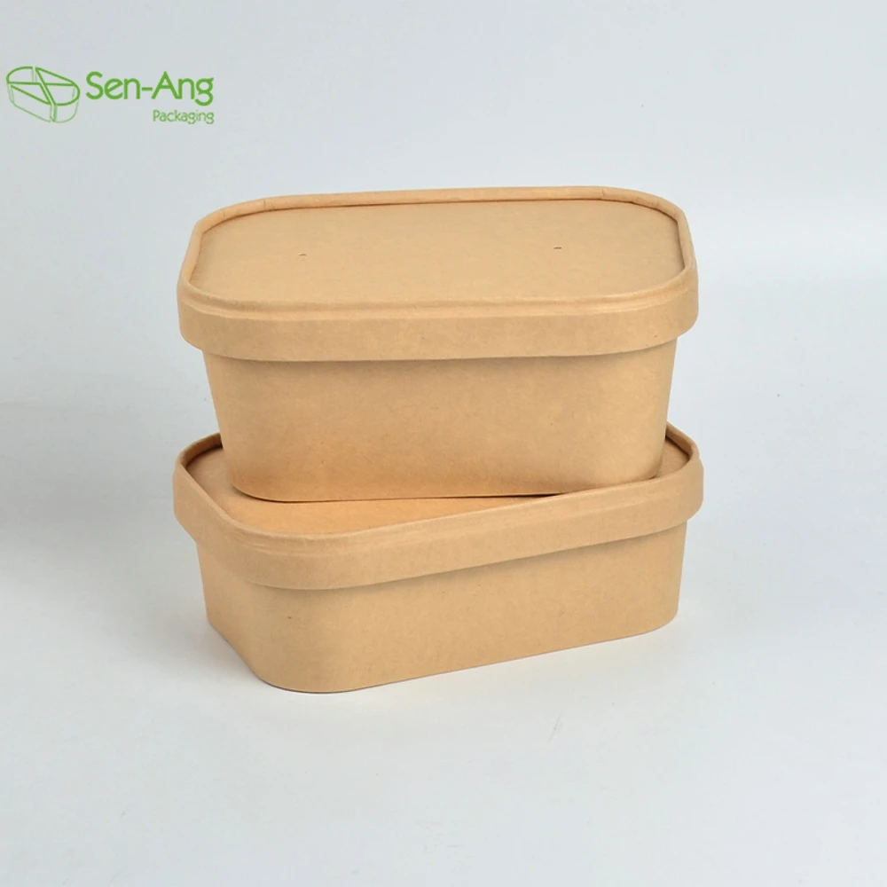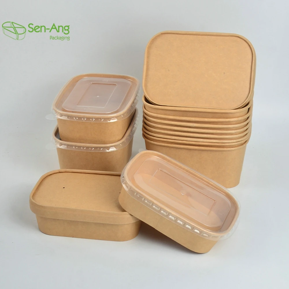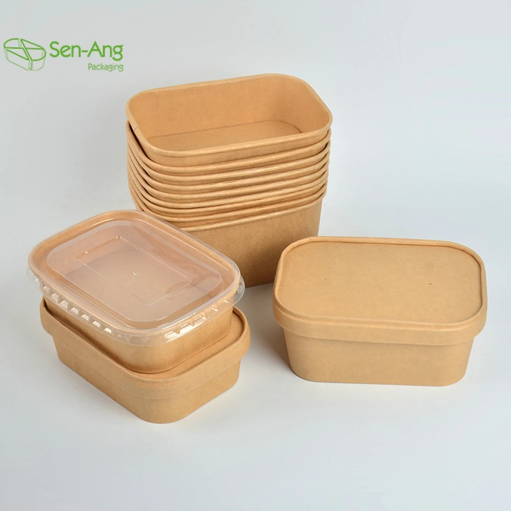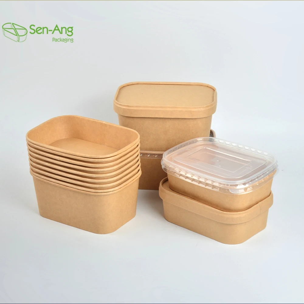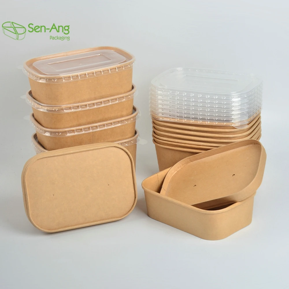High Quality Thickened Lid Cup Take Way Rectangle Takeaway Kraft 1300Ml to Go Salad Paper BowlHigh Quality Thickened Lid Cup Take Way Rectangle Takeaway Kraft 1300Ml to Go Salad Paper Bowl