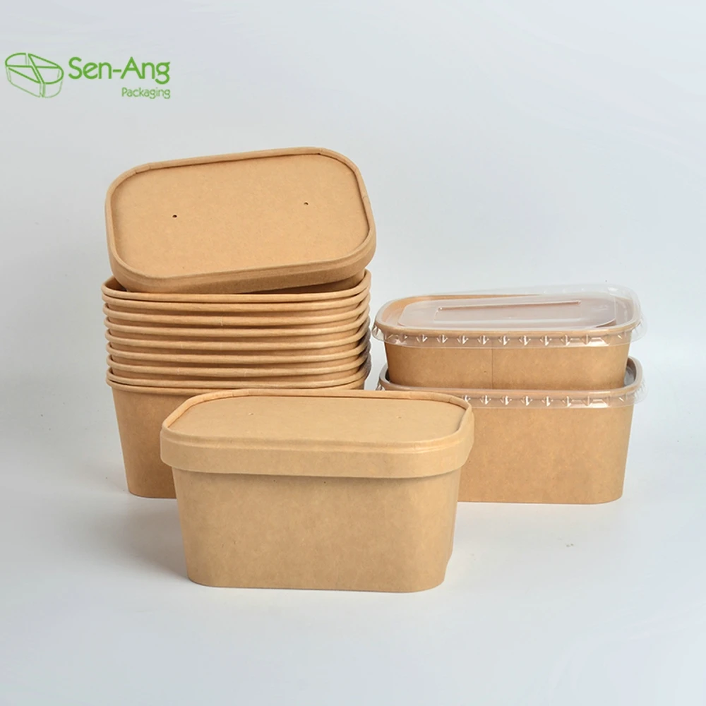 in Stock White Brown Meal Box Pp Container Cover Paper With Lid Disposable Salad Bowl