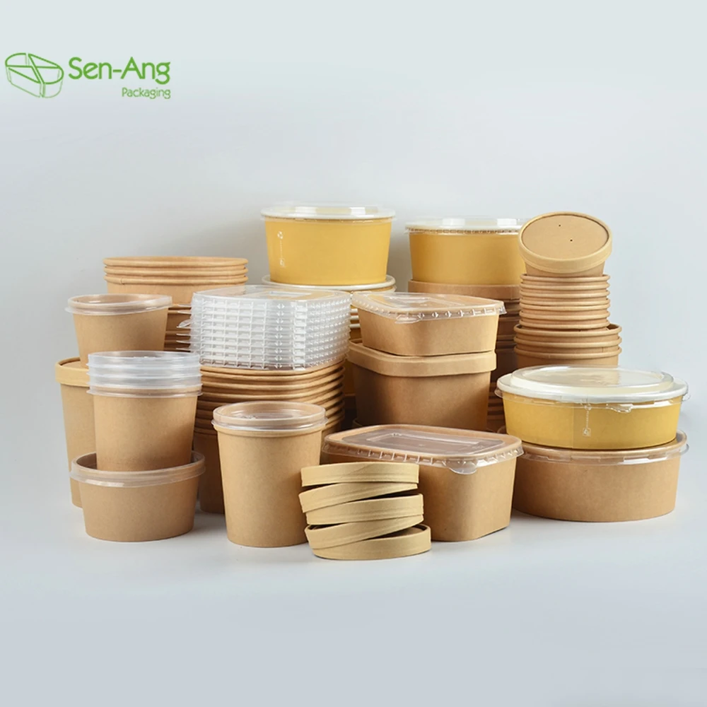 in Stock White Brown Meal Box Pp Container Cover Paper With Lid Disposable Salad Bowlin Stock White Brown Meal Box Pp Container Cover Paper With Lid Disposable Salad Bowl