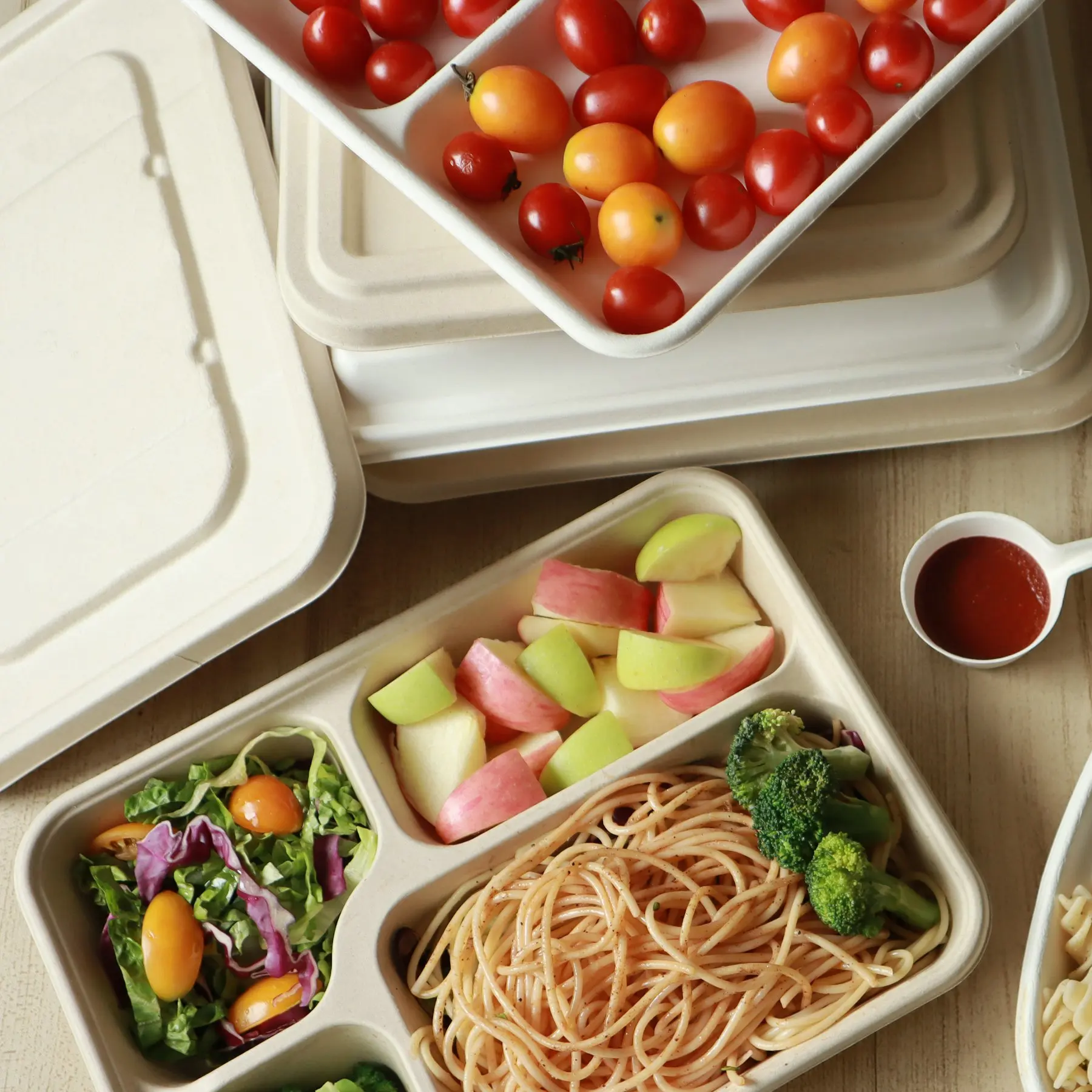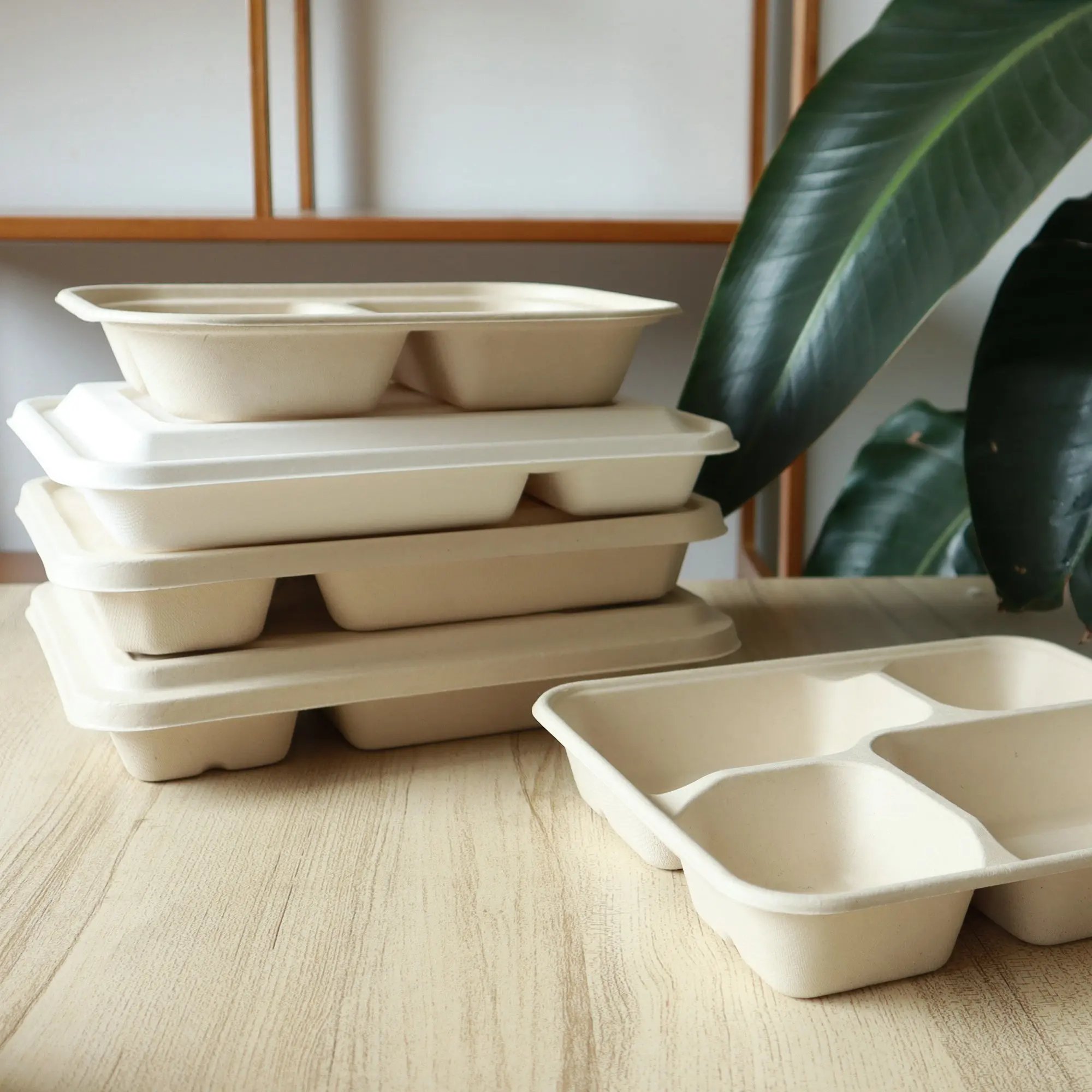 New Design Biodegradable Disposable 3 Food Multi Takeout Box Bagasse 5 Compartment Two Cell Rectangle Sugarcane PulpNew Design Biodegradable Disposable 3 Food Multi Takeout Box Bagasse 5 Compartment Two Cell Rectangle Sugarcane Pulp
