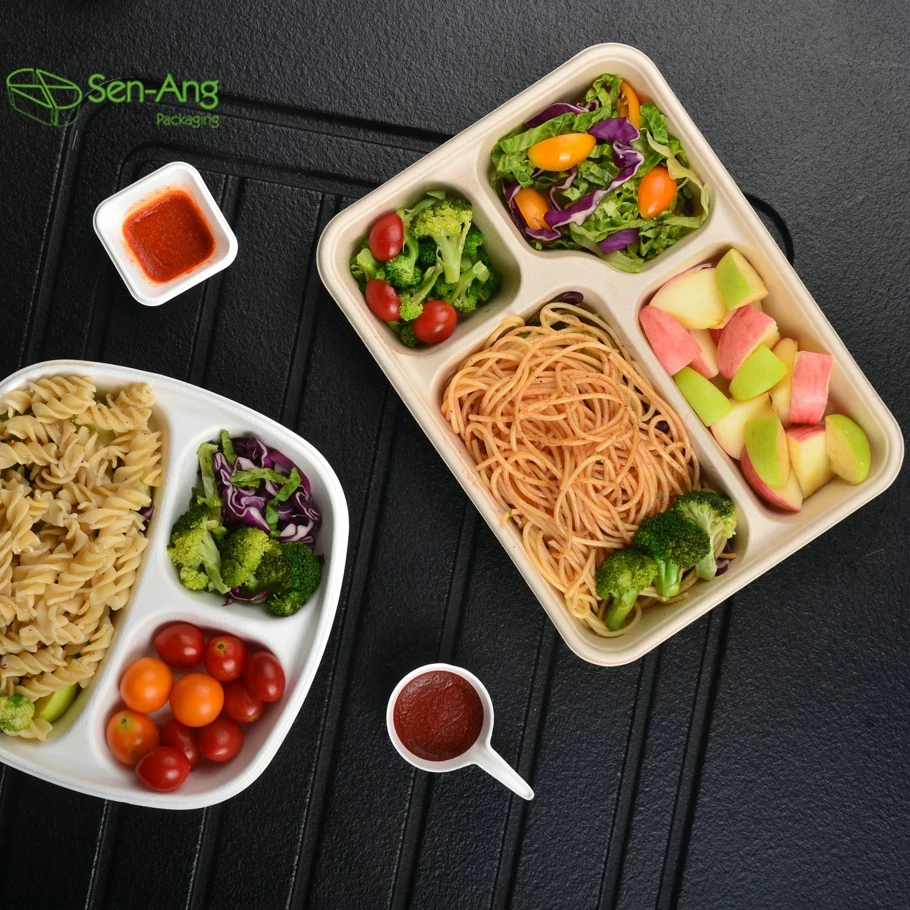 New Design Biodegradable Disposable 3 Food Multi Takeout Box Bagasse 5 Compartment Two Cell Rectangle Sugarcane Pulp