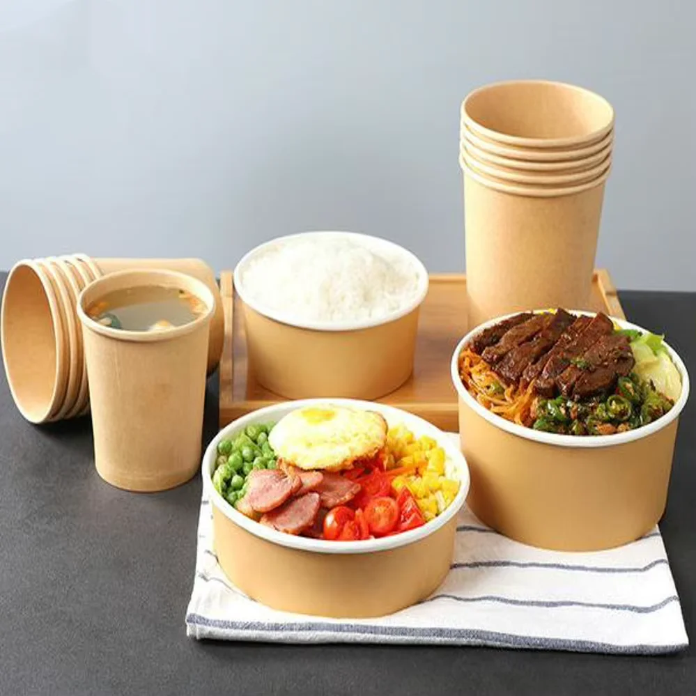Disposable Round Kraft Paper Salad Bowl with PP & Paper Lid Eco Friendly Camping Food Packaging CustomizableDisposable Round Kraft Paper Salad Bowl with PP & Paper Lid Eco Friendly Camping Food Packaging Customizable