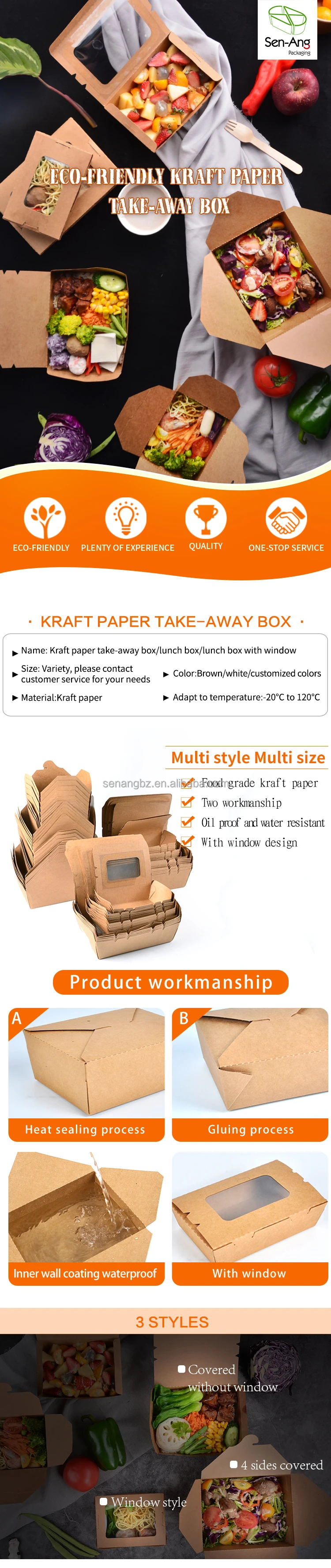 Wholesale Compartment Large Takeaway Paper Container Lunch With Lid Takeway Food Kraft BoxWholesale Compartment Large Takeaway Paper Container Lunch With Lid Takeway Food Kraft Box